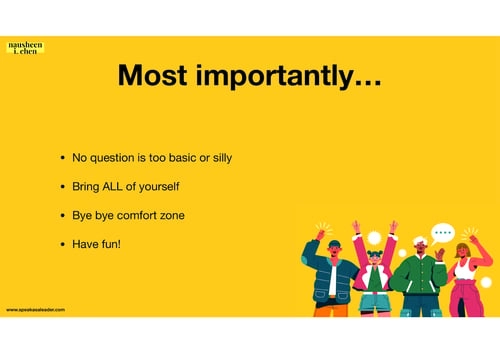 In Nausheen¡¯s five-minute presentation, she explicitly states the most important takeaway for viewers at the beginning of her presentation: