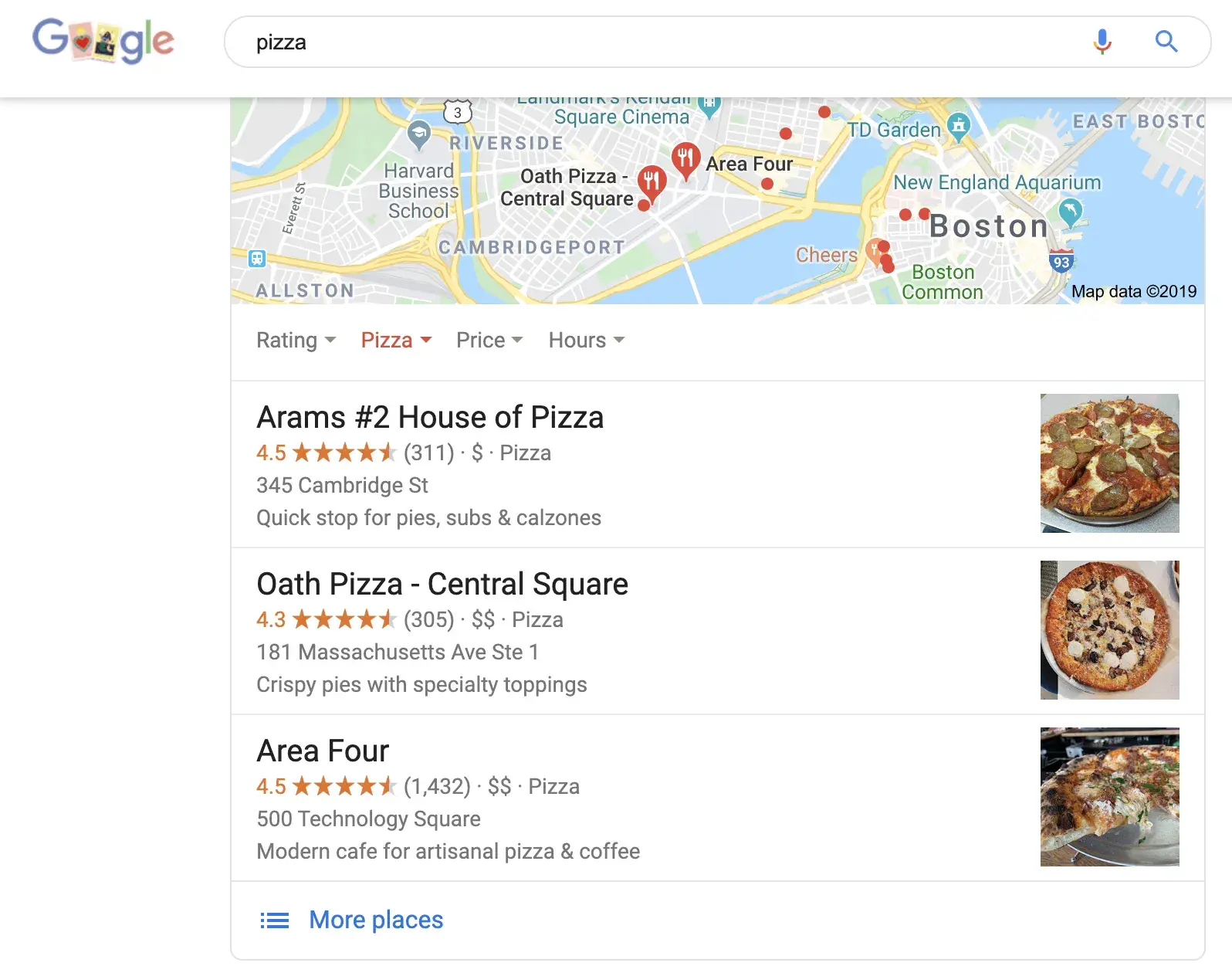 Local packs, shown in the example below, even offer a short list of options based on the business' proximity to the searcher.
