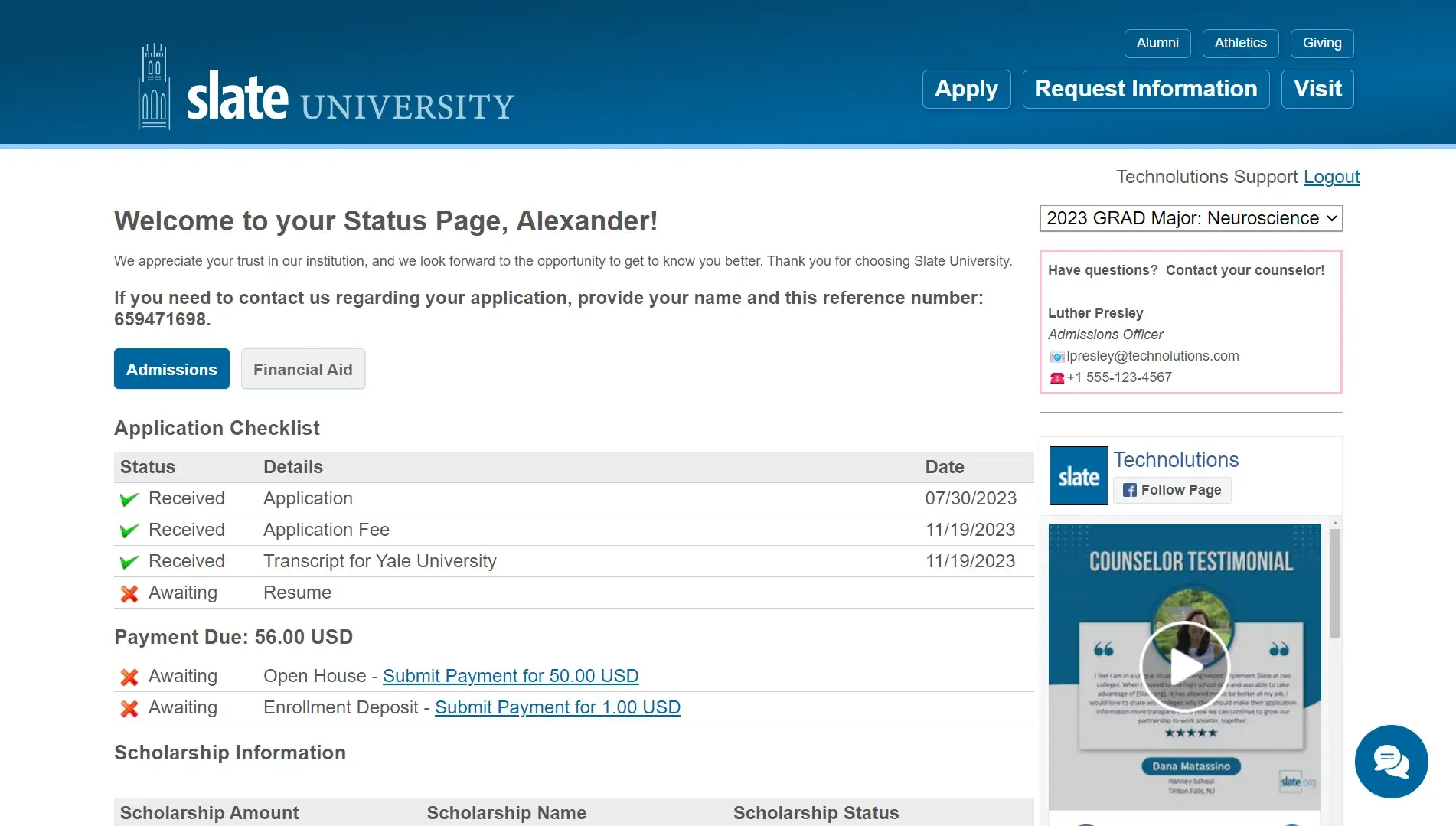- Student portal: Students can access an online portal to view their applications, see upcoming events, and stay connected to your school.
