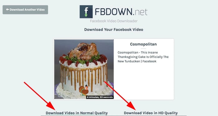 3. You'll have two options -- "Download Video in Normal Quality" or "Download Video in HD Quality". For our purposes, I clicked the "Download Video in Normal Quality" link.