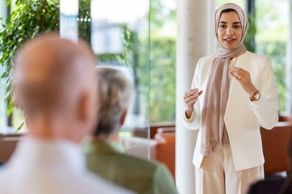 Pro Tip: Taking a class in public speaking is a great way to build confidence especially as it pertains to speaking in front of large groups of people.