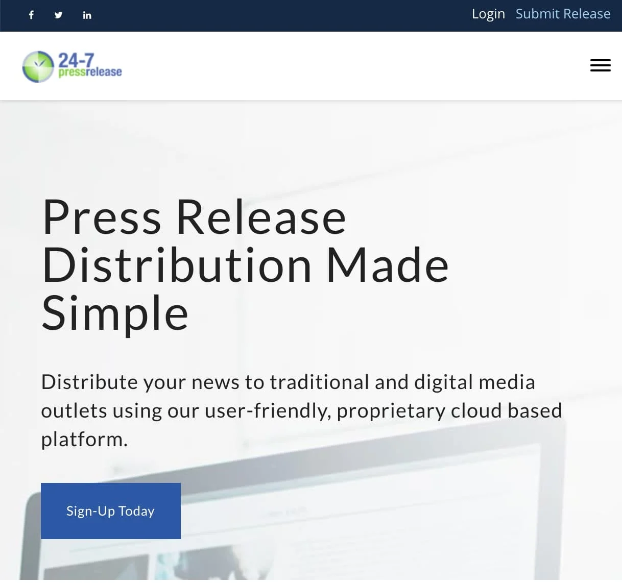 24-7 Press Release uses a cloud-based algorithm to distribute your news to traditional and digital outlets.