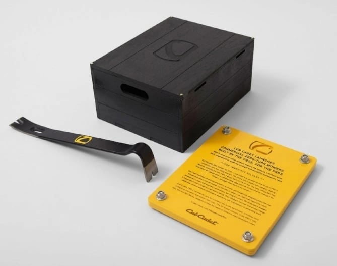 The press release -- which weighed in at a hefty -- was made entirely of Cub Cadet's signature Triple 7-gauge steel, the same material used in their rugged lawnmowers. Outfitted with bolts and shipped to media outlets in a custom crate, the press release also came with a free crowbar (because why not?).