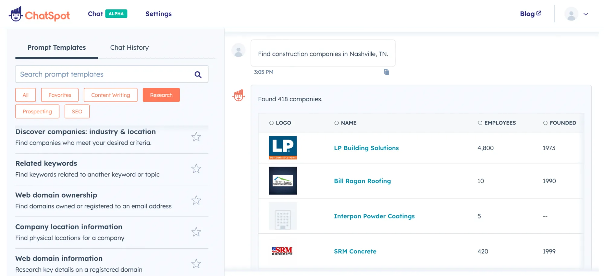 Tips to get started: Test out free tools like or or demos of sales prospecting software. ChatSpot can run company research that you can add directly to your 51³Ô¹Ï CRM, and tools like can analyze any email address or LinkedIn profile to give you background information about that contact.