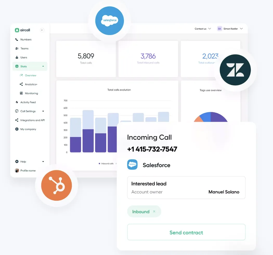 AirCall is a popular cloud-based phone system used by brands like 1Password, Lokalise, and Pipedrive. It positions itself as a solution that democratizes access to AI for small and medium-sized businesses and ¡°simplifies AI for customer-facing teams.¡±