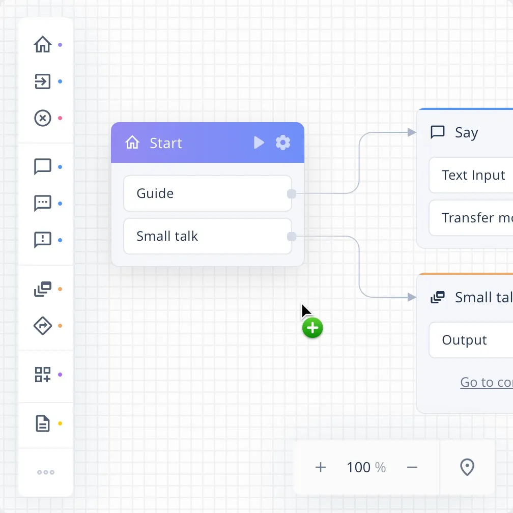 You can customize the voicebot workflow and decide when the conversation should be wired to a real-life agent and when it can be handled entirely by AI.