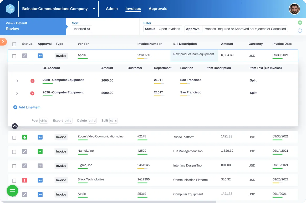 is an accounts payable tool that goes beyond basic automation and templates and uses AI to process invoices from end to end. After submitting an invoice to the platform, AI extracts and reviews all data and automatically sends the invoice to the approval workflow if everything is correct.
