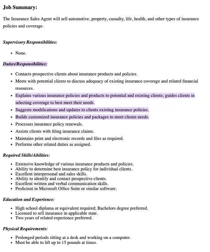 - Customizing insurance packages to meet individual client needs