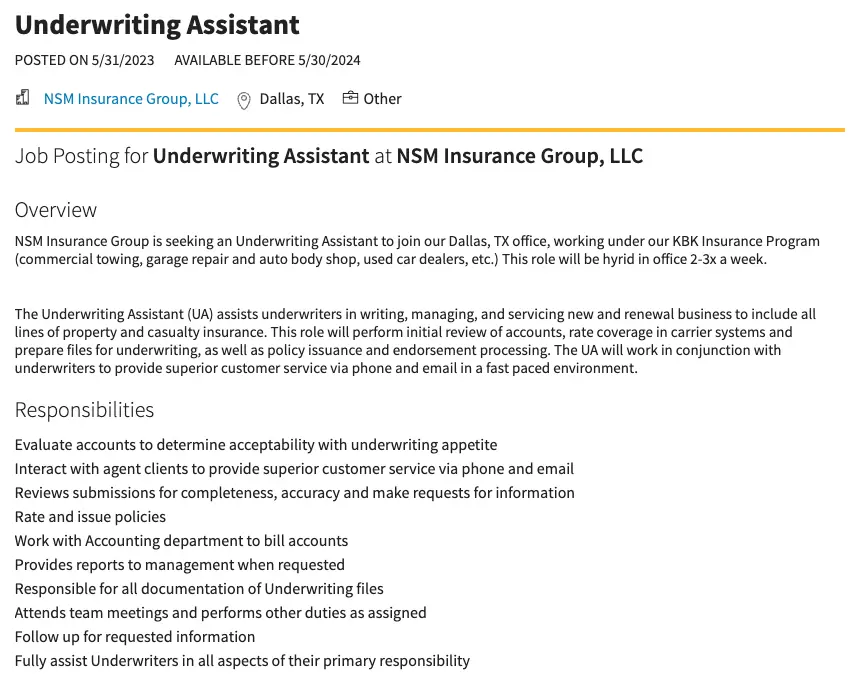 - Assisting underwriters in evaluating insurance applications and determining risk levels