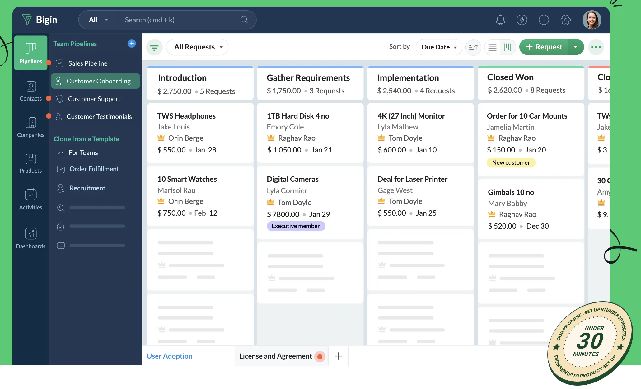 Bigin is like the little brother of Zoho CRM, one of the industry leaders in CRM software. So, why choose Bigin instead of Zoho CRM? Bigin includes the basic functionality that small teams need, priced for small businesses.