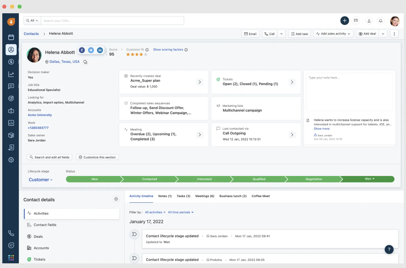 Freshsales describes its CRM as ¡°the single tool that unifies all your business processes, right from sales to marketing to data management.¡± With Freshsales, you can unify your customer data, get visibility into your sales process, and nudge your prospects through the pipeline with email marketing journeys.