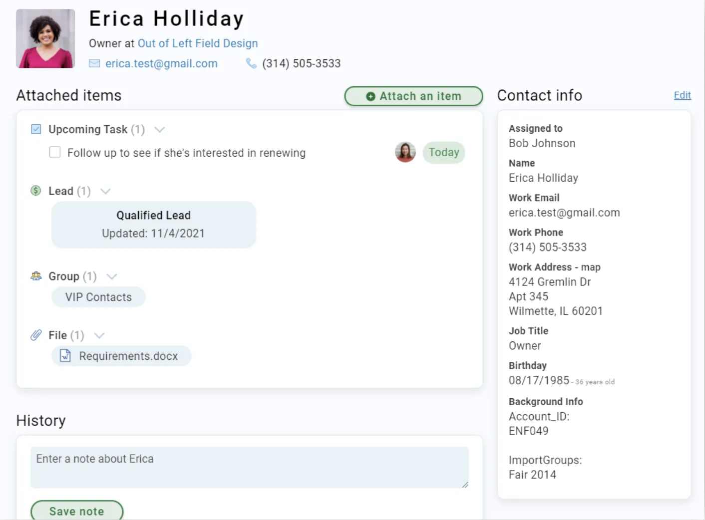 Manual data entry is something no business owner wants to spend time or energy doing, ever. CRM systems save small business owners time by automating call logs and notes, entering company data, and more.