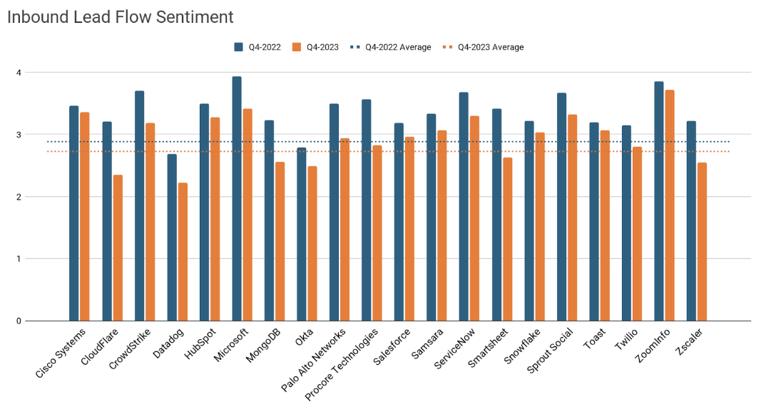 Here¡¯s some data we were looking at recently that shows the difference in seller sentiments for inbound lead flow comparing Q4-2023 to Q4-2022.