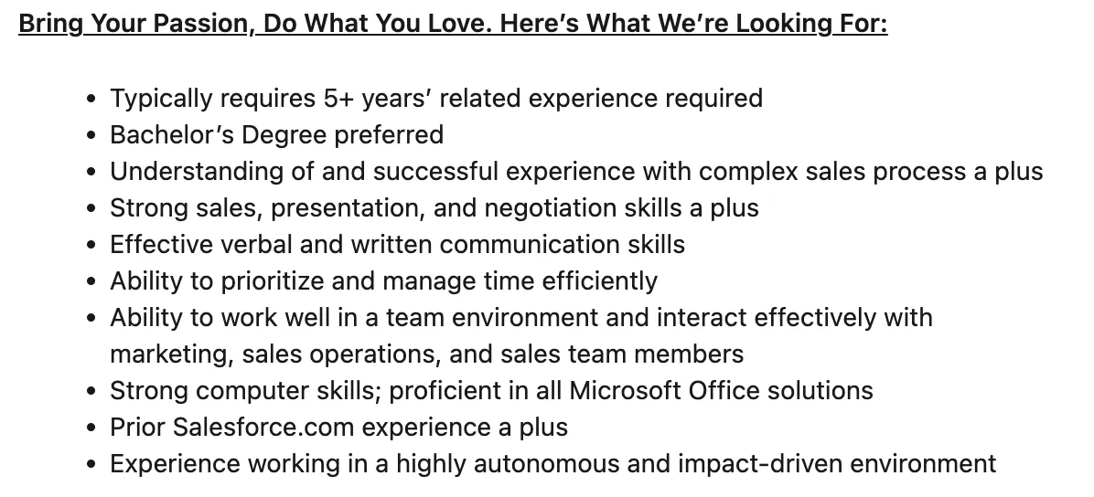 Regarding the skills needed for this role, job descriptions emphasize the importance of having strong sales and communication skills and proficiency in sales technology, such as CRMs.