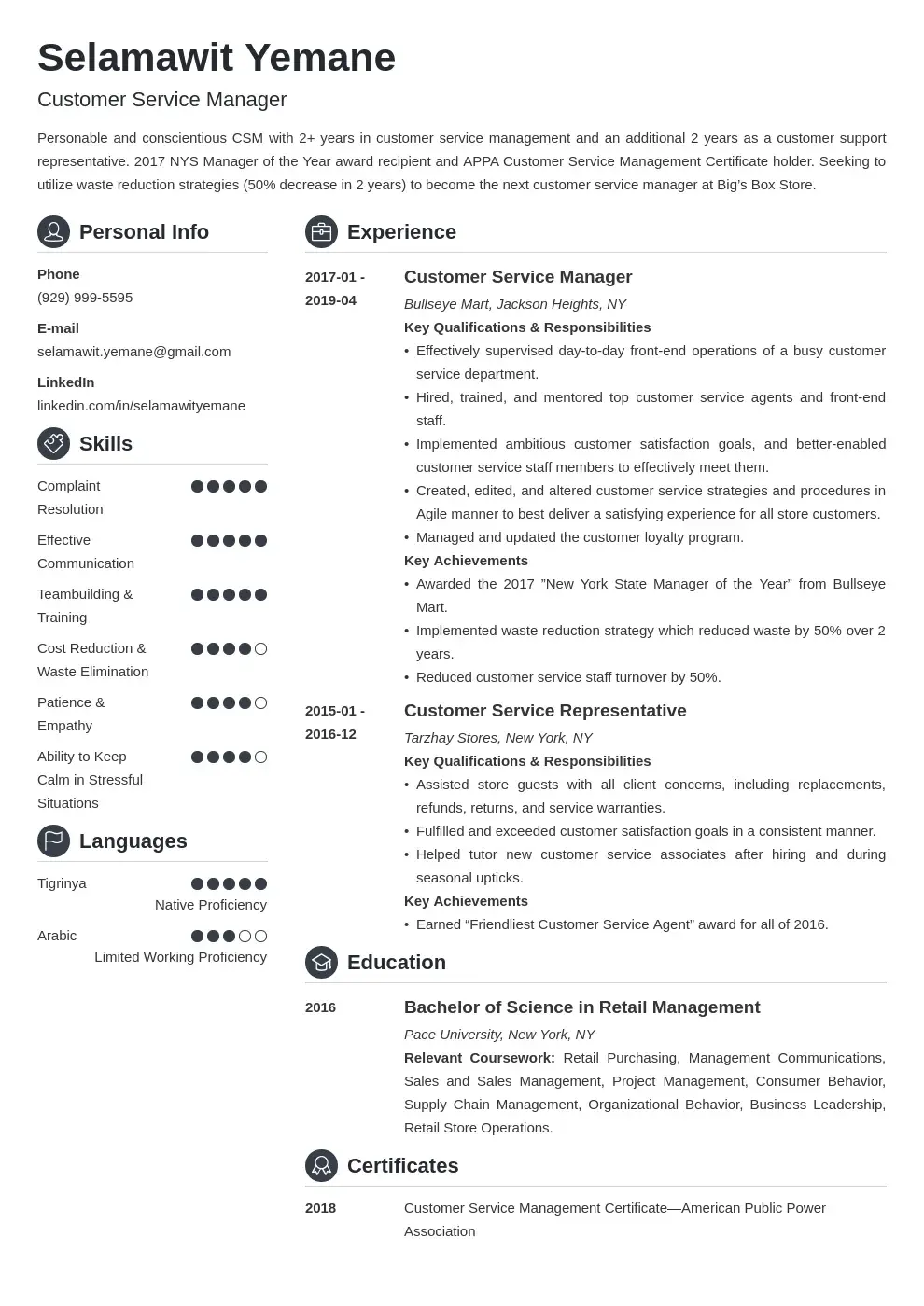 The easiest way to begin creating your customer success resume is to start with a template. That way, the format is already set, and you simply have to input your experience, focusing on what will help you stand out from the crowd and prove your skills.