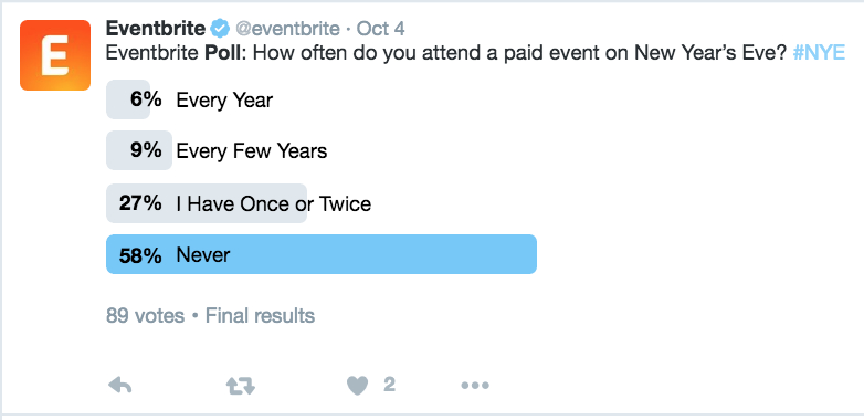 Still don't believe me? This is also a well-known strategy that companies use to garner insights. Brands will often use Twitter polls to engage audiences so that people can feel like they¡®re part of the event. Here¡¯s an example from EventBrite: