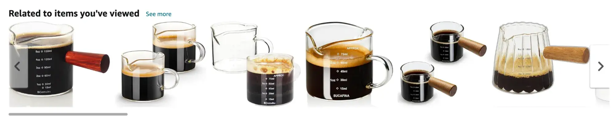 I just bought an espresso machine, so I can make fancy lattes at home. I browsed a few accessories, including the cups that hold the espresso that comes out of the machine. Apparently, they¡¯re called demitasses. Amazon both knew the name and that I was looking for the right one, so it served me up these options.